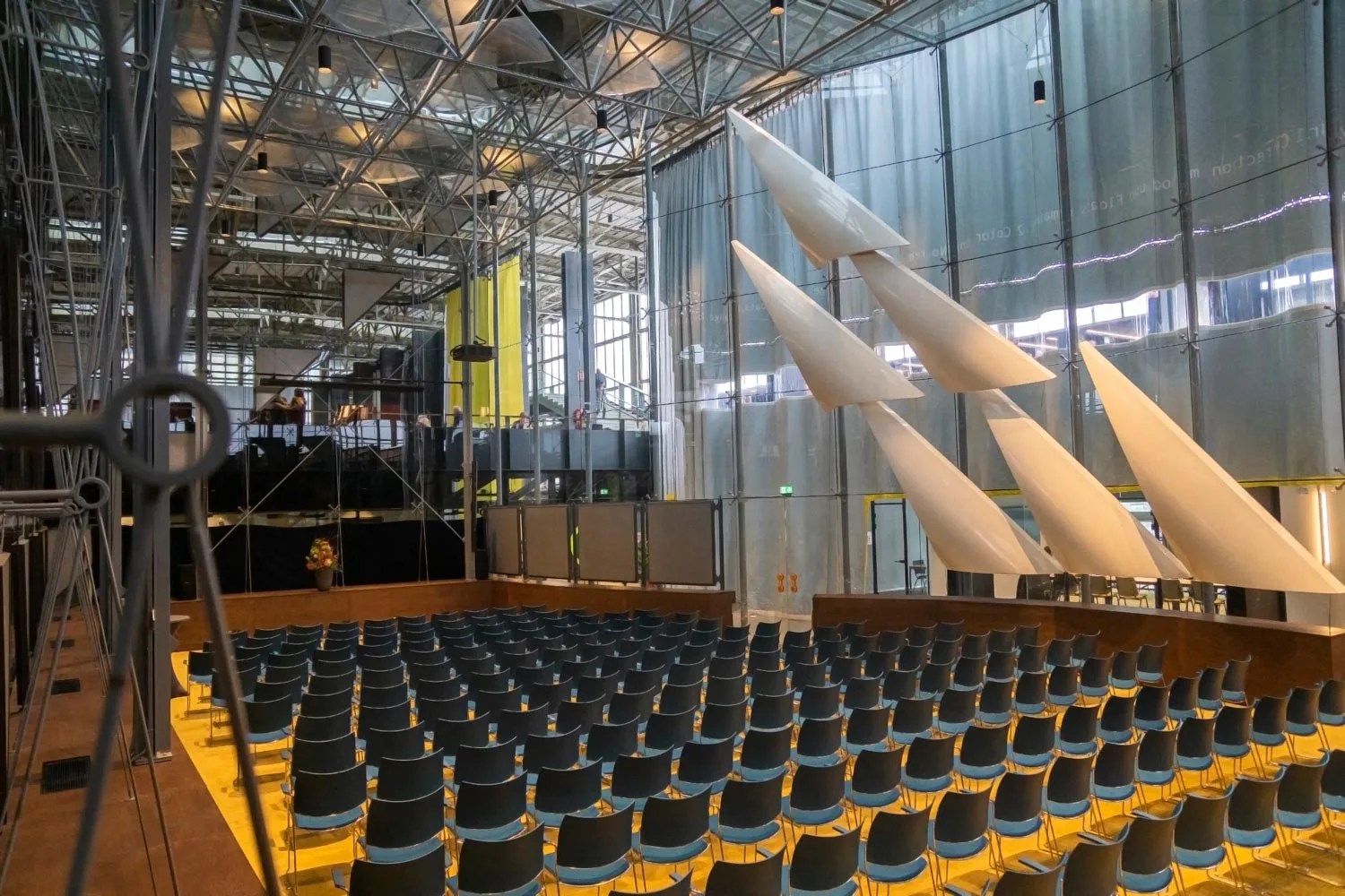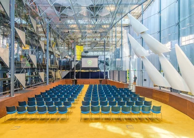 Deze indrukwekkende zaal is te boeken voor jouw eigen evenement. Uitgerust met de beste audiovisuele techniek is de ‘kathedraal’, zoals we deze zaal liefkozend noemen, de perfecte locatie om de beleving van elk evenement naar grote hoogten te stuwen.